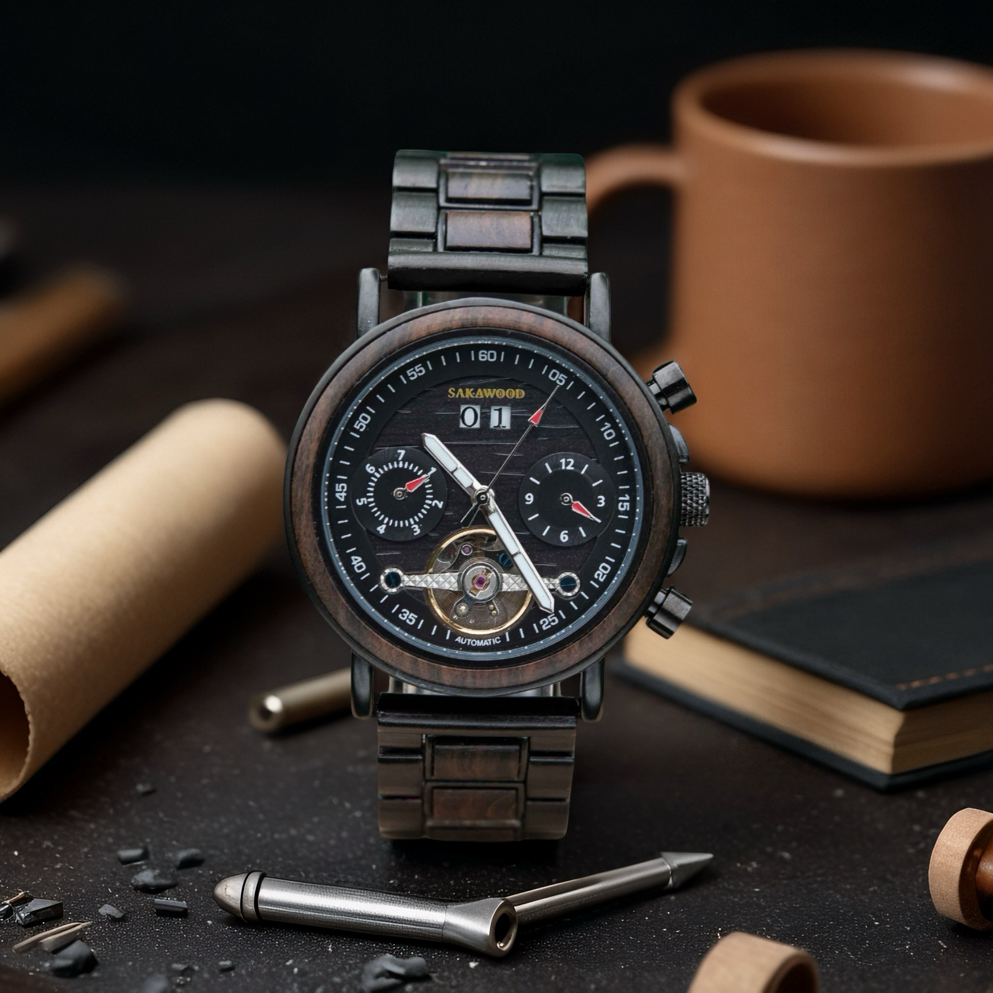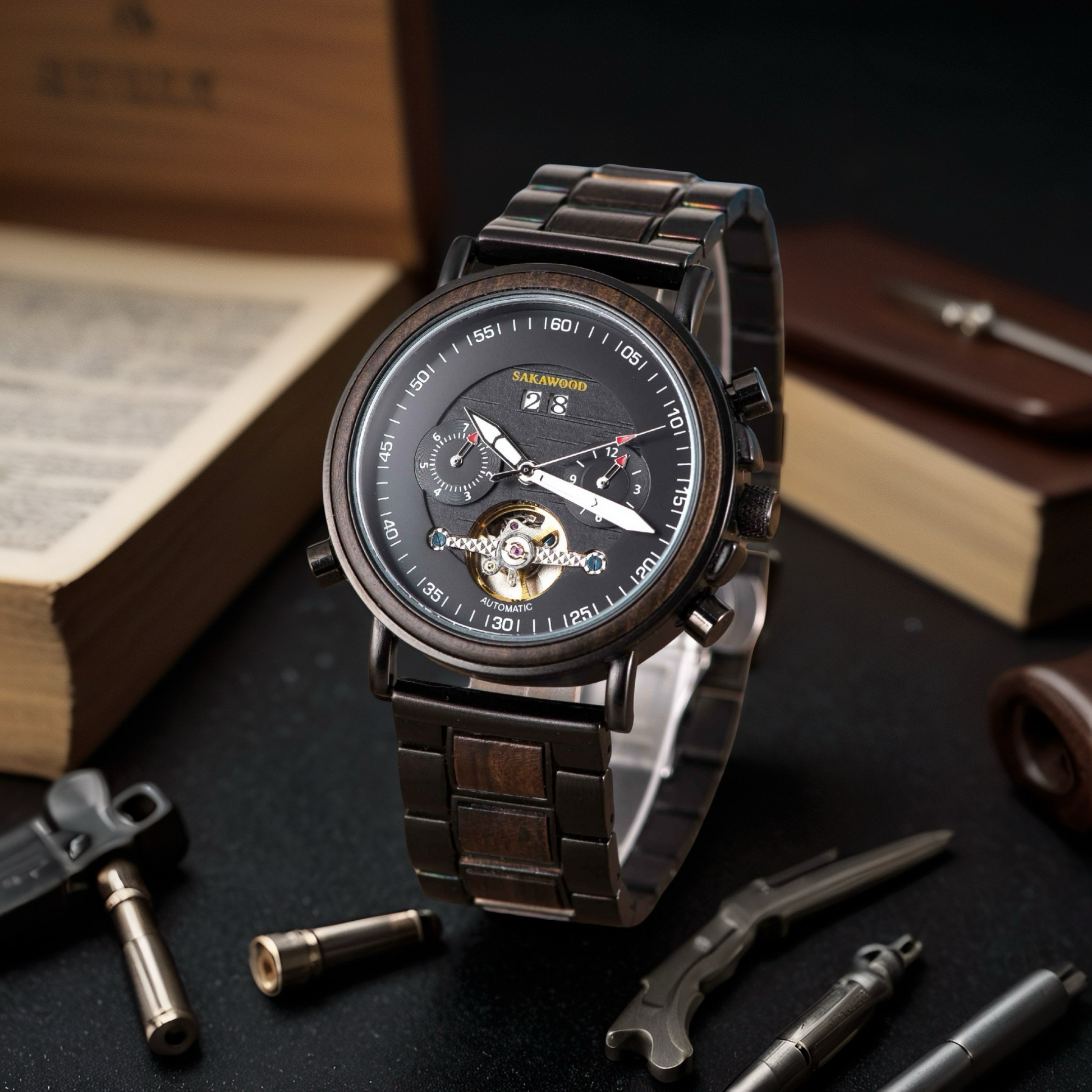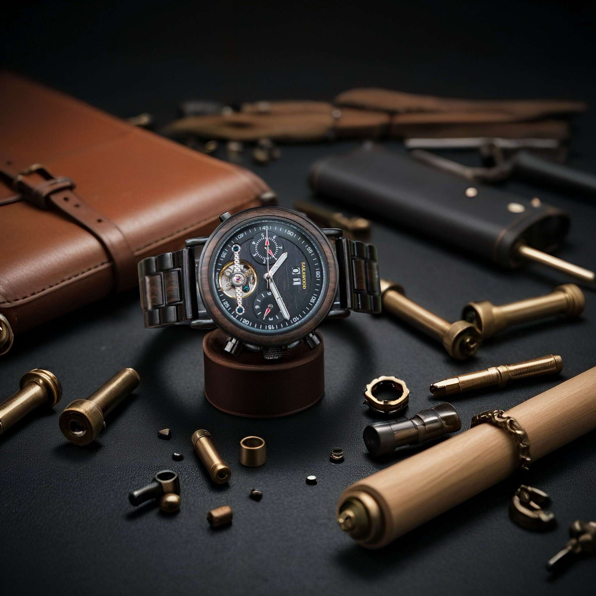 Soft as mist, strong as time — the Sakawood Australia Cloudveil embodies serenity in motion. Handcrafted from ebony wood and brushed steel, it mirrors calm mornings above the clouds, where strength meets stillness.