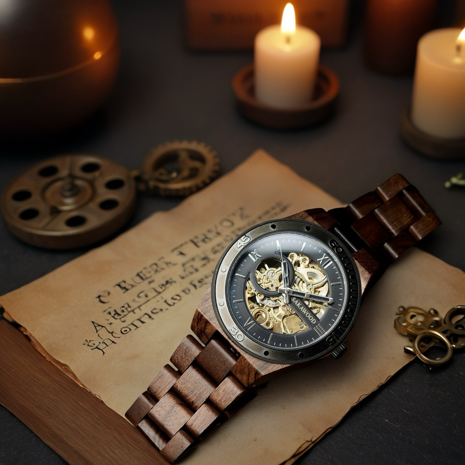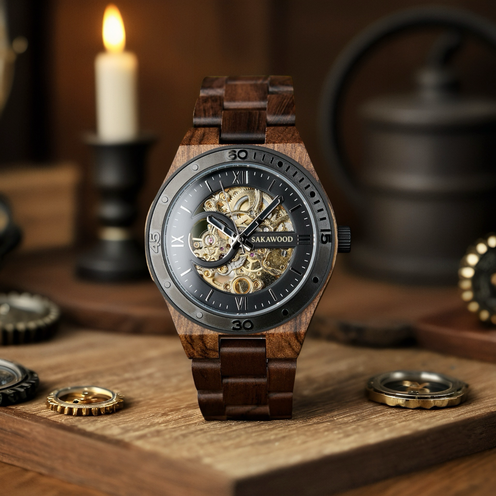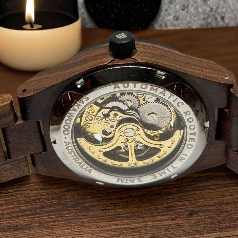 Unveiling the soul of craftsmanship, the Sakawood Australia Skeleton Wildwood reveals time in its purest form. Its open-skeleton dial exposes the living heartbeat within, framed by the bold warmth of walnut wood.